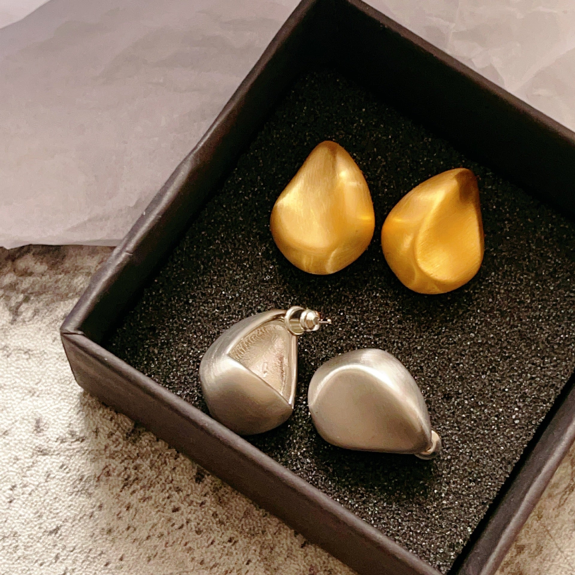 Elevate your style with our exquisite Matte Gold Drop Studs, an embodiment of modern elegance and understated luxury. Crafted from 18K gold-plated brass, these earrings feature a unique drop shape with a sophisticated matte finish that adds a touch of refinement to any ensemble.